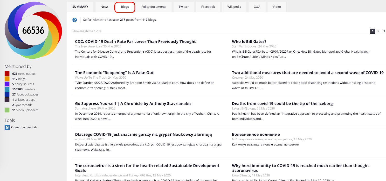 Blogs tab on the Altmetric Details Page
