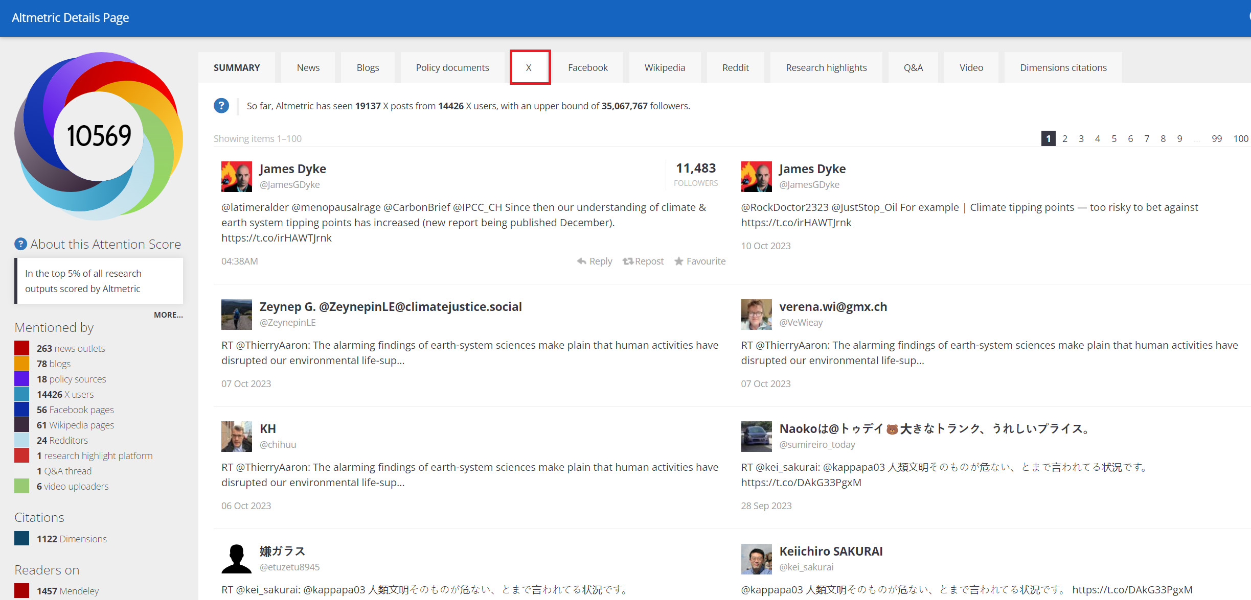 The X tab on an Altmetric Details Page