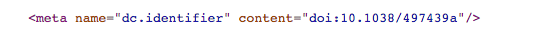 In the example below for an article published in Nature, we can see several of the meta tags that Altmetric requires in the source code of the page. This includes DC.identifier (with the DOI), DC.title, DC.creator, citation_title and citation_online_date.