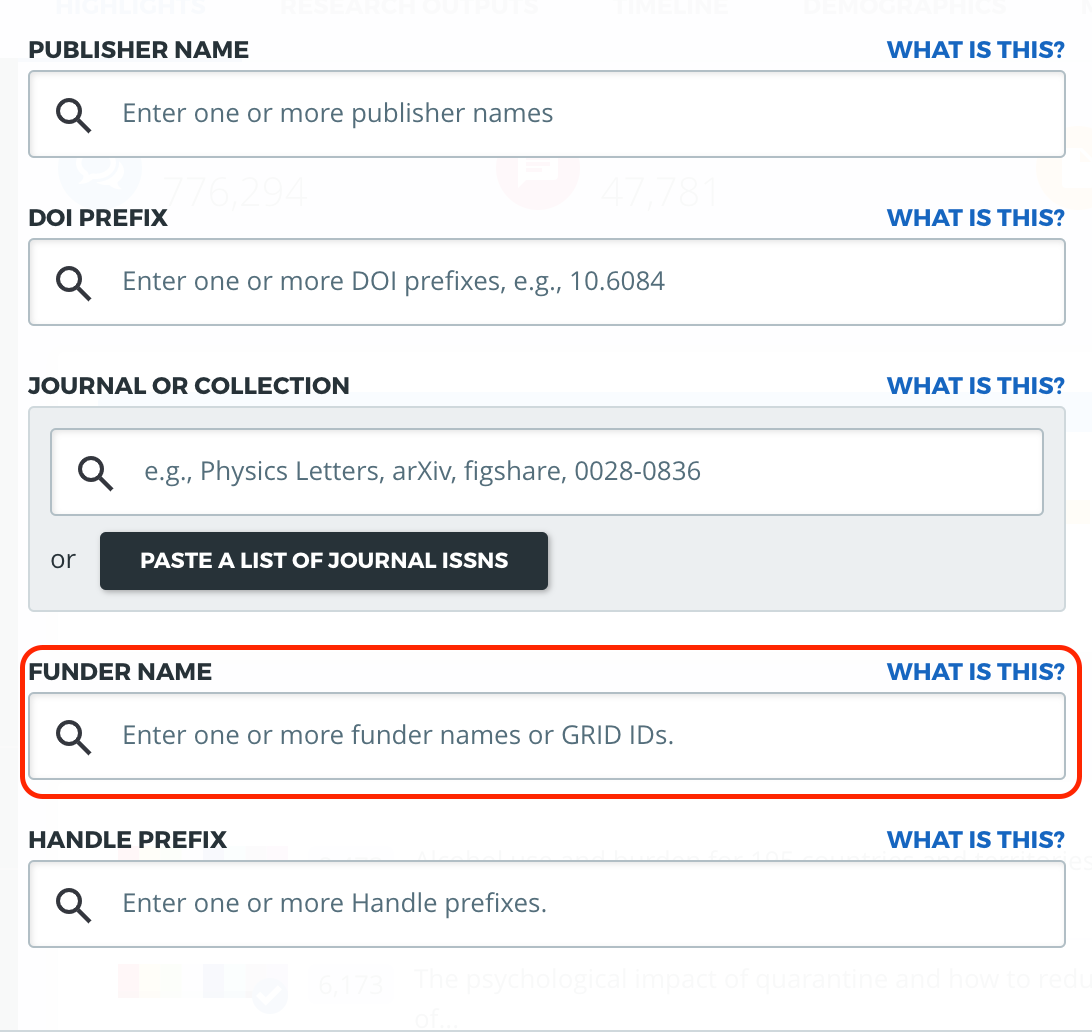 The Altmetric Explorer now makes it easier to find out what online engagement published research funded by a specific funder has had — as we’ve introduced a search option which allows Explorer users to use both the Advanced Search and Quick Search menus to search for specific funders (one or more at a time) by name or using the funder’s GRID ID. Funder names and data originate from our sister product Dimensions, which has a very robust collection of funder information.