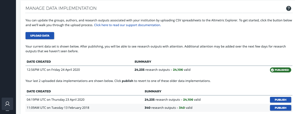 The CSV Uploader Tool for Altmetric Explorer for Institutions (EFI) is used to quickly update the data implementation for your organization’s Explorer instance. You will be able to use the CSV Uploader Tool to update the department or group hierarchy, author names, and associated research outputs as often as you wish.