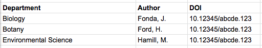 Those files will define your instance's department/group structure, verified author list, the relationship between publications and authors, the relationship between publications and departments, and which publications are associated with your institution's view of the database. By linking publications with authors and publications with departments, you are making it possible to search by those authors or departments and return a list of associated publications.**