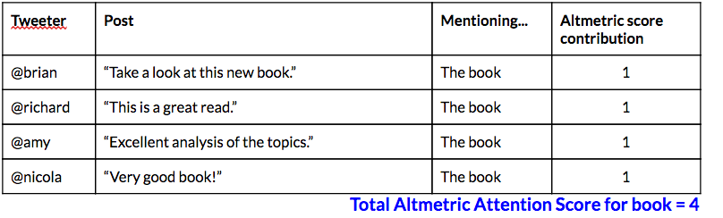 Altmetric Attention Score calculation for books