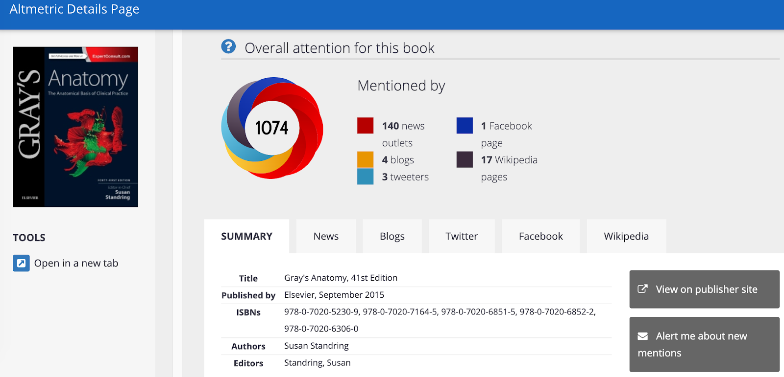 Viewing Altmetric book attention