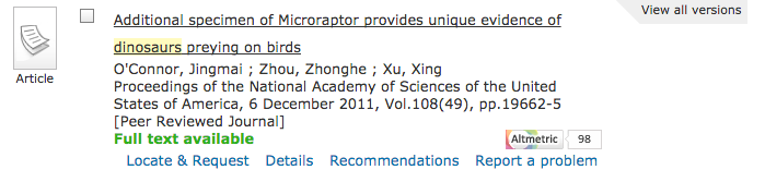 Primo provides a free plugin that allows anyone with a Primo instance to add Altmetric institutional repository badges.