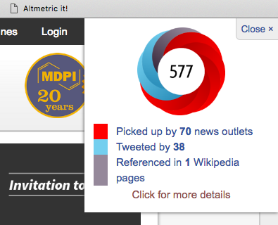 Altmetric allows researchers to use Altmetric badges to showcase their Altmetric Attention Scores and Details Pages. You can embed the badges into your individual profile, CV, or on your publication pages.